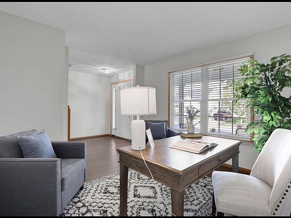 Enjoy a bright, open floor plan with luxury vinyl floors, fresh paint, and brand-new carpet (2025). The spacious kitchen features white cabinets, a center island, breakfast bar, and stylish backsplash. Relax in the sun-filled great room or on the long front porch and freshly painted multi-level deck. The vaulted primary suite includes a large walk-in closet and dual-sink bath. Minutes to Chase, Polaris, freeways, and more perfect for comfortable living and entertaining.