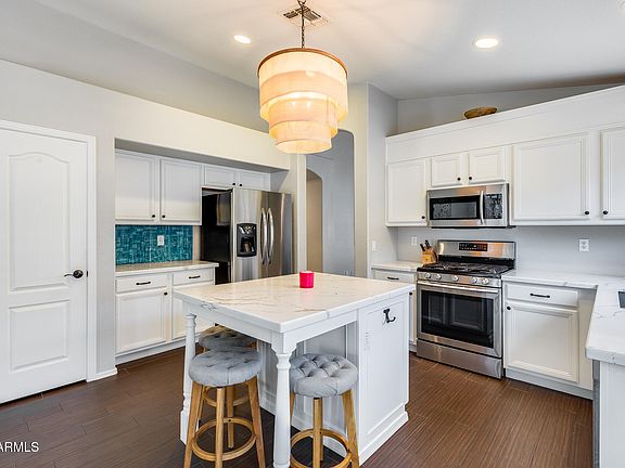Check out this beautiful move-in ready 3 bed/2 bath home in Fletcher Heights! Special features and upgrades you'll love include: 2017 HVAC / 2018 Water Softener / 2020 Water Heater, tile throughout, vaulted ceilings, formal living & dining rooms, open kitchen with Quartz countertops & lots of storage, accent walls, and spacious bedrooms. Low maintenance backyard features covered patio, Pergola shade structure, synthetic grass, storage, room for a garden, chicken coop or kid's playset. Did you see the 220v hookup in the garage? Perfect for your Electric Vehicle, RV or Welder! This location is prime - around the corner from Sunrise Mountain High School and Sunrise Pool and close to the Loop 101 for easy access around town.
