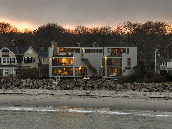 Majestically sited along the shores of Goose Rocks Beach in Kennebunkport stands this refined compound comprising a main residence and an architecture award winning beach pavilion. Goose Rocks Beach is among the 1% of Maine's 3,478 miles of coastline that is sandy, a rare and cherished commodity in Maine. Carol A Wilson designed and impeccably constructed by Bowley Builders, both structures offer three spectacular floors of living space. Built in 2013, the main house encapsulates 3 bedrooms and 4 bathrooms in 3,300+/-sf of living space, while the pavilion constructed in 2011, offers 2 bedrooms and 3 bathrooms with 2,100+/-sf of living area. The compound is thoughtfully situated to capture panoramic views from Timber Island to Stage Harbor Island. Throughout both homes, meticulous attention to detail and bespoke finishes abound. From solid walnut architectural accents to custom tile and lighting, every element reflects unparalleled craftsmanship. A magnificent third floor deck graces the main house, featuring a wood burning fireplace, home theater and bar. A captivating backdrop for entertaining amidst breathtaking views of the bold Atlantic Ocean. Embodying the meeting of art, convenience and functionality, the homes are outfitted with world class appliances, systems and fixtures. The compound is sited facing due south, which allows for a solar effect that enables the houses to be heated with optimal efficiency in the winter months. Both homes are equipped with in-floor radiant heat systems and forced hot/cool air systems that are controlled through a Crestron intelligent home management system. This state-of-the-art system allows for remote management of home systems while the homeowner is away. This rare offering, a legacy in the making, awaits a discerning owner to savor its tranquil elegance this summer.