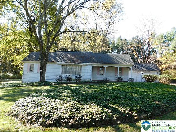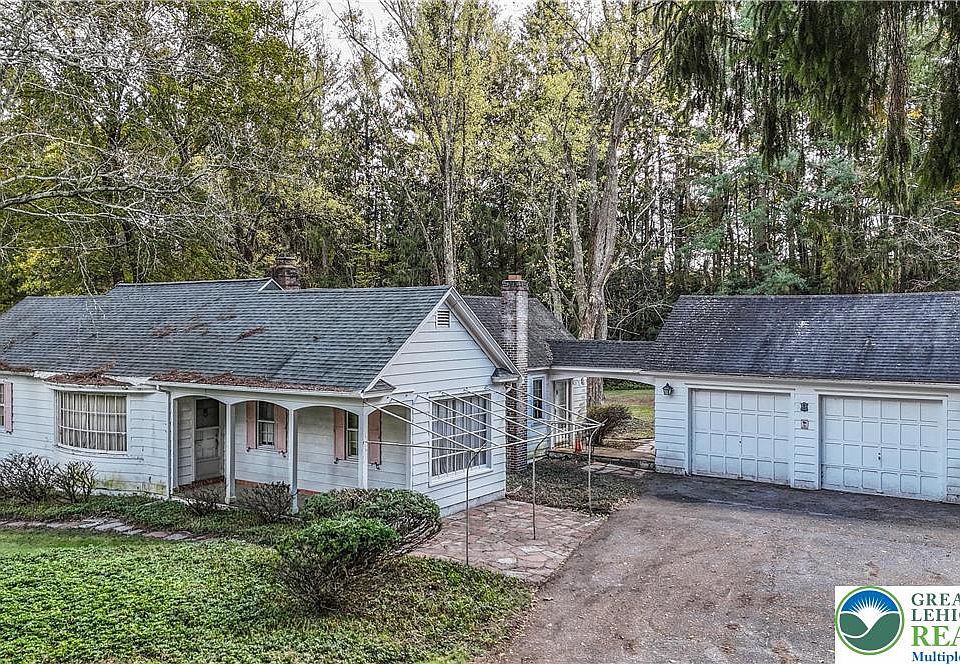 Situated in the picturesque Locust Lake Valley, this unique rancher welcomes you through a private, stately driveway. Inside, discover three generous bedrooms filled with natural light, 1.5 baths, and dedicated office space. The stone fireplace, built-in bookshelves, and numerous closets add abundant charm. The lower level can be perfect for entertaining with its convenient walk-out entrance. Public sewer service. A breezeway connects to a detached two-car garage with a utility shed. The open front porch, side patio, and expansive courtyard provide endless outdoor entertaining possibilities. Experience the feeling of being a world away while remaining just minutes from Interstates 81 and 80 and essential amenities. Gather with family and friends on your private, nearly 6-acre refuge and toast to the good life as the sun sets. Homes aren't just houses-they're part of our stories.