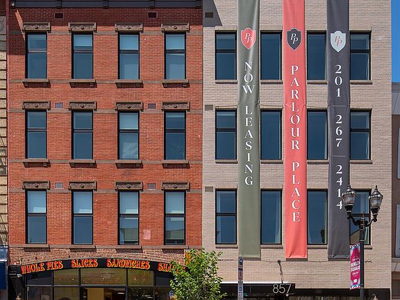 Live stylishly at Parlour Place, Jersey City's newest fee free boutique rental blending historic character with modern luxury. This stunning SW - facing Studio , thoughtfully designed interiors with sleek contemporary finishes will elevate everyday living. The beautifully crafted kitchen features ample storage and is fully equipped with GE stainless steel appliances, including a dishwasher, microwave, full-size refrigerator, and electric range. Parlour Place offers a curated suite of amenities including a well-equipped fitness center, furnished rooftop deck with sweeping skyline views, dedicated co-working spaces with both private spaces and a communal conference table, a laundry room, bike storage, package lockers, and even an on-site pizzeria for ultimate convenience. Smart living features include keyless entry, smart intercoms, and free Wi-Fi in all shared spaces. Located where McGinley Square, Journal Square, and Downtown Jersey City connect, you'll enjoy seamless access to the Journal Square PATH station with direct service to both Lower and Midtown Manhattan, plus convenient bus routes including service to Newark Airport.