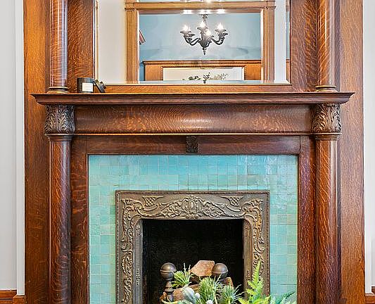The primary suite is on the second floor and has a in-ceiling Sonos sound system, ornamental fireplace (also with Moroccan tile surround) and a tiled terrace overlooking the backyard. The spacious ensuite bath has Axor fixtures, a double vanity and custom tile throughout. In the winter, enjoy relaxing in the Penhaglion clawfoot tub next to the window and watch snow fall in the backyard below. On the other side of the level is the library, with its own custom tiled fireplace and Lincrusta wall covering. The library has a discreet projection system, featuring an automated retractable screen. In-ceiling speakers and a subwoofer provide immersive surround sound for movie nights.