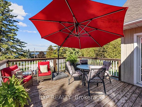 Experience refined lakeside living in this beautifully crafted raised bungalow at 857 Cedar Glen Rd, offering over 3,400 sq ft of finished living space with breathtaking views of Sturgeon Lake. Situated in the peaceful Kawartha Lakes community of Dunsford, this property is just steps from the Trent Severn Waterway, with a public boat launch just down the road, perfect for boating, fishing, and water recreation. Inside, the open-concept layout features vaulted wood ceilings, large windows with views of Lake Sturgeon, and an impressive floor-to-ceiling wood-burning stone fireplace that creates a warm and inviting great room. The custom kitchen is designed for entertaining, complete with quartz counters, a large centre island, stainless steel appliances, and custom cabinetry. Adjacent to the kitchen, enjoy the convenience of a built-in bar, blending beauty with function. The primary suite offers a tranquil retreat, featuring a walk-in closet, private walk-out to deck, and a spa-inspired 5-piece ensuite with a soaker tub and walk-in glass shower. Two additional bedrooms complete the main floor. The fully finished lower level is ideal for gatherings and guest stays, showcasing a spacious rec room with a second fireplace, oversized windows, a walk-out to the yard, and space for a games area or pool table. A fourth bedroom with a walkout to the yard, a full bath, and a large laundry room complete the basement. Outdoors, enjoy quiet evenings by the fire pit under the stars, surrounded by mature trees and just a short stroll from the water. The detached garage offers excellent storage or workshop potential, and the long private driveway accommodates multiple vehicles. A rare offering that combines upscale finishes, natural beauty, and year-round enjoyment, this is a home you'll be proud to show.