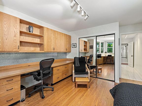 Beautifully remodeled and fully furnished studio with custom built in oak bookcases and desk station. The perfect set up for someone who wants to work periodically from home whilst living in the midst of one of San Francisco's most welcoming neighborhoods, Noe Valley. Just 5 minutes from the Noe Courts Park offering tennis, basketball and charming green spaces. Short walks to Philz Coffee and the Fire Fly restaurant one of SF's best kept secrets. Danny's cleaners is only minutes away...if laundry is not your thing, Danny can take care of you (she even does alterations). Lots of storage, for office set up or personal use. Creative use of magnetic bulletin boards to help you manage projects. A comfortable and adjustable office chair. Under counter lights in the desk unit. New appliances including an electric range with overhead exhaust fan system with microwave, new custom fit refrigerator/freezer New kitchen cabinets with under counter lighting, deep drawers, pull down chef's kitchen sink faucet, custom Quartz countertops, SmartCore kitchen flooring and spot lighting Freshly painted, new lighting, new electrical wiring with Romex throughout Closets with adjustable shelving to accommodate your Double insulated windows and blinds Bathroom with walk in shower, custom built vanity, new ceiling fan, 3 way mirror and lots of lights Shared garden designed to utilize gray water for primary irrigation. Careful water rationing has yielded beautiful potted orchids and a variety of climate friendly plants Access to new shared Miele washer and dryer All work done with permits Water is included All utilities included. Available on month-to-month basis. Fully furnished.