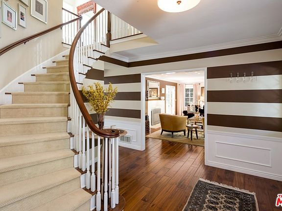 A traditional gem located on a quiet, tree-lined street in Little Holmby, with an easy walk to Westwood Village and UCLA's beautiful campus. This tastefully remodeled home offers an ideal floor plan with grand public rooms, ease of flow and incredible natural lighting. Formal foyer with a grand staircase and powder room leads to a formal living room with fireplace, large picture window and French doors leading to the backyard patio, and, on the other side, to a formal dining room. Light and bright cook's kitchen features stainless steel appliances, Carrara marble, a large butler's pantry, laundry area and pantry. Family room with fireplace and French doors leads to a prettily landscaped and private backyard. Three bedrooms upstairs including primary bedroom with sumptuous en-suite bath and separate tub/shower. 4th (guest) bedroom with en-suite bathroom is adjacent to the kitchen. This home exudes happiness and tranquility while keeping in character with the old-school charm of the house.