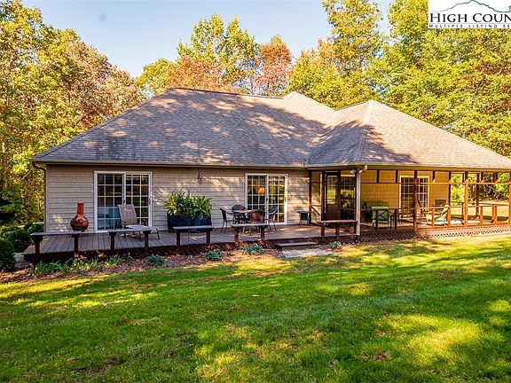 dining area. The open deck (Trex flooring) overlooks the serene back yard. Spacious primary bedroom with access to large, screened porch features trey ceiling, double walk-in closets and large bath with garden tub and shower. Hallway on opposite side of home leads to 2 ample guest rooms and full bath. A separate laundry room is conveniently located off kitchen to garage. Stairway in garage leads to floored area with potential for additional living area. Home is being sold mostly furnished; a list of exclusions will be provided. This Roaring Gap, NC location provides just the right balance of seclusion and convenience.