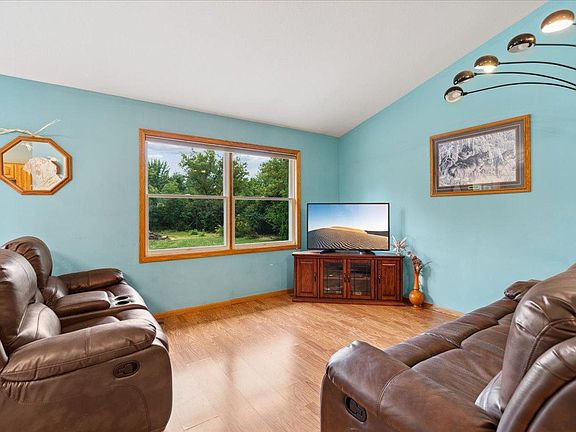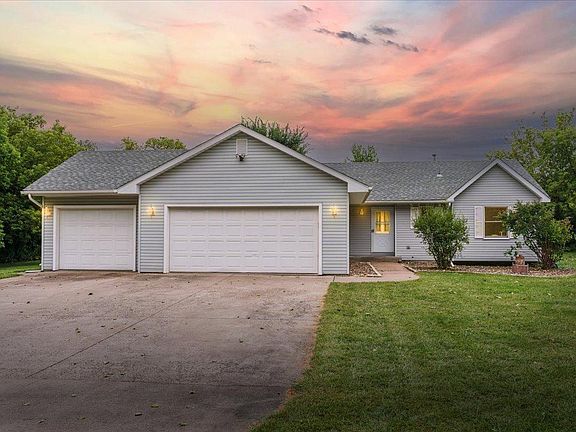 Hudson Rambler. This 4 bedroom, 3 bathroom home sits on 2.33 acres. The home features a private owner suite separated on one end of the home from bedrooms 2 and 3 on the other end of the home. The main living area has vaulted ceiling to create open feel. The entry from the 3 car garage is plumbed for laundry on the main level if desired. The lower level has a large open area for fun and entertaining including a gas fireplace. Also, on the lower level is a 4th bedroom and the laundry and utility area where a 1 year old furnace and water heater are located. Other notable features include a 1 year old roof, Kinetico Water Softener/whole house filtration and reverse osmosis water system at the kitchen sink and an invisible fence.