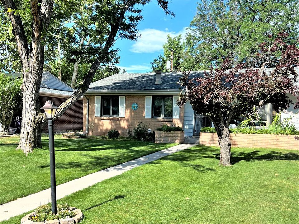 This is one of the nicest and updated homes in all of Virginia Vale and SE Denver and good sized with 2400 sf. The kitchen and bathrooms were recently updated. The kitchen has granite countertops, under counter lighting, tiled floors and updated stainless appliances. In the dining room has wood laminate flooring and new light fixtures. The dining room is directly across from the kitchen and can easily accommodate a dining room table large enough for 8 people. The front living room is spacious and faces east for the morning sun. Off the living room is a great space for an office or small bedroom complete with closet and French doors. On the main level finds the primary bedroom which has carpeting and a 3/4 bath with a skylight. There is a full bath on the main level with a skylight. This lovely home has a full finished 1100 sf basement complete with a large family room with a gas fireplace and a built-in entertainment shelving and storage center. At the other end of the basement family room is a built in Murphy Bed perfect for sleepovers. The basement has a 3/4 bath and a huge laundry room with a utility sink and lots of built in storage cabinets and closets. The washer dryer stays with the home as well. There is another large non-conforming bedroom in the basement as well.