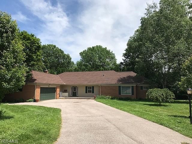 Brick ranch located near Stan Hywet on cul-de-sac. Mid-century style with private back yard. Large Great room has cathedral ceiling, feature wall with built-in display shelves and wood flooring. Glass French doors separate the great room & dining room. Large dining room has built-in glass front china cabinets flanking the gas log fireplace. Dining room has recessed lighting, large windows, wood flooring and door leading to back yard deck. The back yard offers lots of gardening area, large trees & shrubbery, huge deck for alfresco dining and entertaining. Large kitchen with white cabinets, appliances and eating area. Located off the kitchen is a large laundry/mud room that leads to original maid's quarters/BR #4 with full bath. All three bedrooms are generous sizes. Office/Den has built-in bookshelves. Large 2 car attached garage. One new furnace 8/19. Central air repairs/updates 8/19. Hot water tank 5/19. No basement (small crawl space). Needs some updating. Nice location & neighborhood.