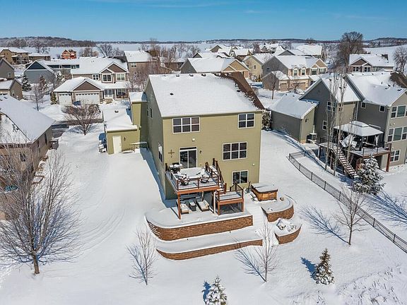 Welcome to this beautiful walkout 2-story home only a short walk away from Lake Waconia and the association maintained private beach/lake access! Grand foyer greets your guests, gleaming wood floors, mud room with built ins, spacious office with french door, open concept layout with abundant natural light and beautiful views, gas fireplace with built ins in the living room, large center island and big walk in pantry in the kitchen, maintenance free deck off the dining area. The upper level has four spacious bedrooms including the primary bedroom with private bath and two walk in closets. Convenient upper level laundry. Walkout lower level features a large family room w/gas fireplace, built ins and bar area, 5th bedroom, full bath and lots of storage! Step out from the lower level onto the patio and hot tub for some relaxation. This location can't be beat! Enjoy the lake, regional park, dining, downtown shops and more within easy walking distance.