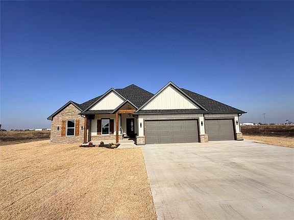 USDA Financing available on qualified buyers **$7000. Builder Incentive** Beautiful Custom built home sets on just under 3/4 of an acre mol, plenty of room to build a shop, open floor plan, vaulted ceilings, 3 bedrooms, and an extra room to be used as an office or workout room/craft room, two and half bath, the Primary Bedroom, and bath offers a large spa like bath, with freestanding soaker tub, large walk in shower, walk in closet space, with laundry room access. Open floor plan, 8' front door, the covered patio & front porch has great space to entertain. 3 car garage with openers on both sides and key pads, guttering. Country living but so close to all the amenities. Just minutes from Yukon, Down Town OKC and shopping/ restaurants close by. Banner Schools. Listing Realtor is part owner and related to other owners.