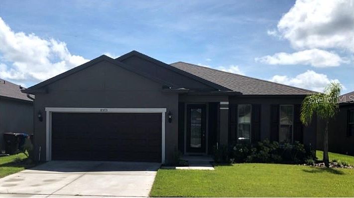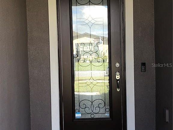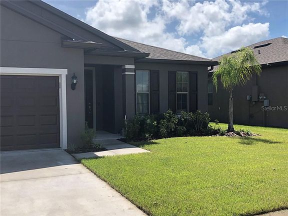A beautiful move in ready home with a lake view!! Everything you want in a home, a decorative glass front door, spacious rooms including a flex room, tall dark coffee kitchen cabinets with moldings, granite countertops, covered lanai, fenced backyard with a Lakeview. The new community with easy access to I-4 completes the great features of an enjoyable living.