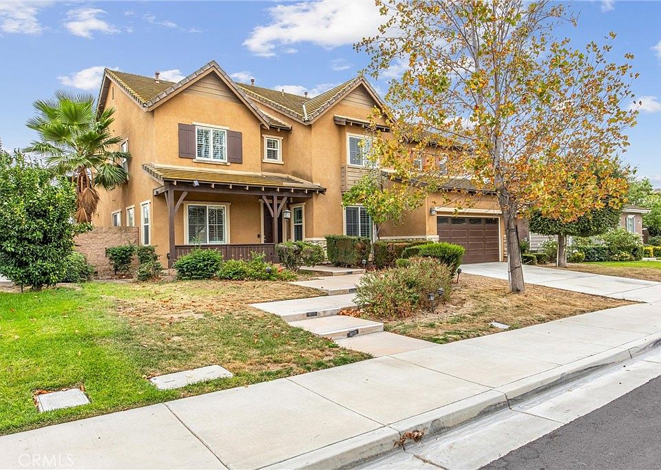 Former Model Home: Add your own paint and carpet and this house will shine like new! This is the PERFECT floor plan! Tile Flooring throughout the bottom and upper floor. Downstairs Kitchen cabinets are in great condition along with granite countertops. Stainless appliances and refrigerator are included. Upstairs you will find a huge loft area. Primary Bedroom is extra large with a sitting area. Plenty of Storage in Primary for collectables and family photos. Upstairs hallway has plenty of cabinets. 3 additional spacious bedrooms are on the 2nd floor. LG Direct Washer and LG Sensor Dryer are high end and ready for a new owner. Front yard hardscape is beautiful. Patio in the backyard is sufficient for entertaining. The Outdoor Gazebo adds warmth. 220 Outlet in Garage, 4 Car Tandem Garage. Located near the 15 Freeway, Eastvale Community Park, and SilverLakes Equestrian and Sports Park. New Civic Center is coming soon:The Civic Center will include a new City Hall, Police Station, Library / Innovation Center, Public Plaza, Civic Park.