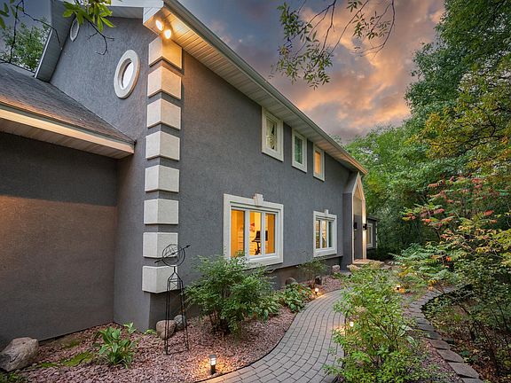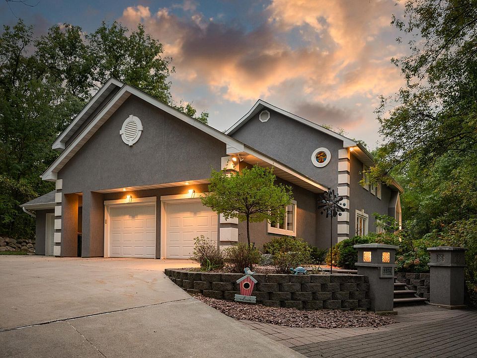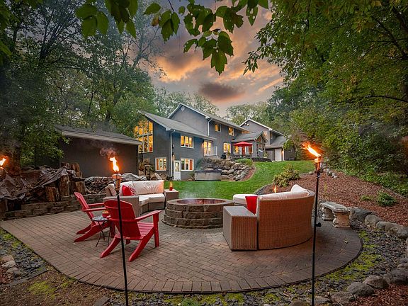 Welcome to your next dream home! Situated on 3.34 wooded acres in Shakopee, this home combines natural beauty, great design, and distinctive style. A paver sidewalk and guest parking area welcome you and your visitors, setting the tone for the custom details you’ll find throughout. Inside, over 4,500 finished square feet showcase a home rich in character and warmth—not your typical cookie-cutter design. The open floor plan centers around a vaulted living room with fireplace and floor-to-ceiling windows that face gorgeous, mature trees. In the 4-season porch you’ll find another fireplace and vaulted ceiling, making this the perfect spot to spend an afternoon reading. It also has the convenience of stepping directly out to the patio, blending indoor and outdoor living.