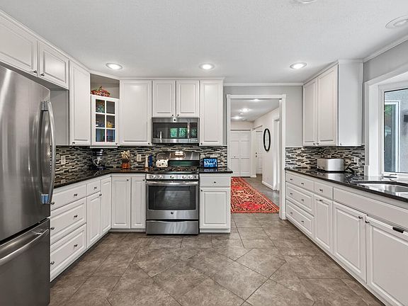 The outdoor living spaces are equally impressive with a large main patio, built-in fire pit with paver patio, and a peaceful wooded backdrop ideal for relaxing or entertaining. The insulated, heated 3-car garage (with an oversized 14x19 third stall) and dual storage sheds give you plenty of space for organizing outdoor and play items. Beyond the main living spaces, you’ll find an expansive mulched area perfect for a playground, garden, or gathering spot, along with partially mulched walking trails that wind through the 3+ acre property—ideal for exploring nature and enjoying the serene setting.
