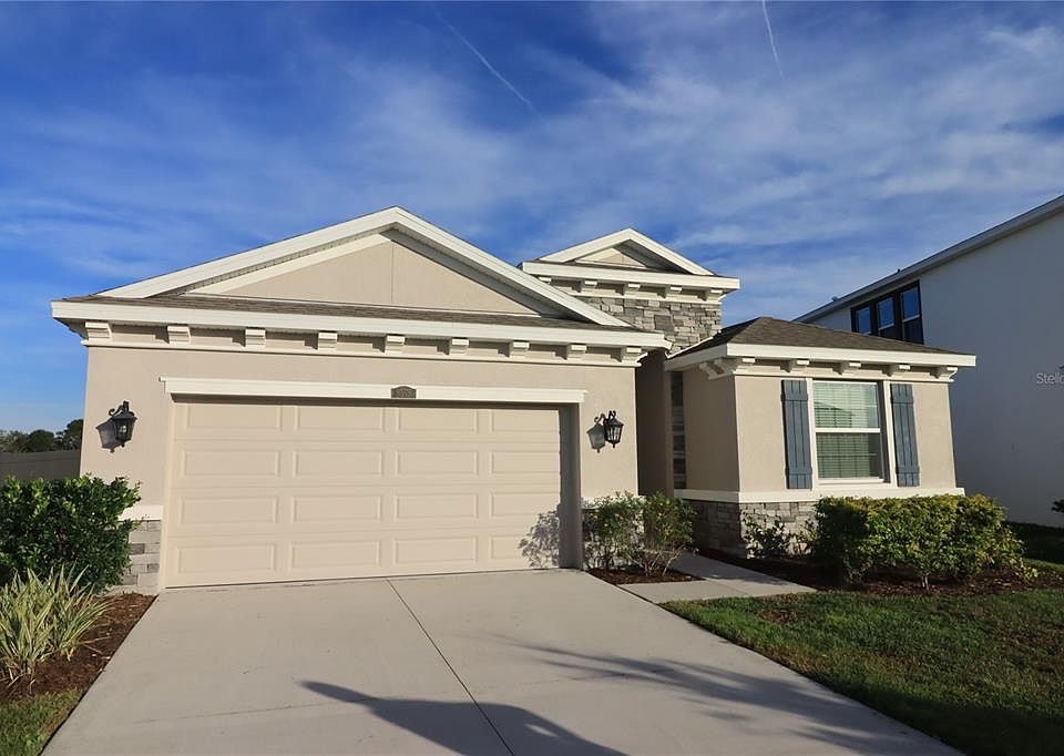 Welcome to one of the most desirable neighborhoods in Wesley Chapel, the Epperson Lagoon! The Lantana Built December of 2020 by DR Horton offers 4 bedrooms in a split plan layout, 2 full bathrooms, half bath, a gourmet kitchen complete with granite counters, upgraded oversized 42" cabinets with crown Moulding, stainless steel appliances, and a pantry. The master suite features tray ceiling, large ceiling fan and his and hers separate closets for plenty of storage. The master bathroom offers dual sinks, granite countertops, large soaking tub, linen closet and separate tiled shower. Step outside and enjoy the beautiful weather Florida has to offer from your extended screened in lanai overlooking natural conservation from your fenced in backyard. Lanai is wired with 240 volt(jacuzzi) connector. Quick access to I-75 Close to all things shopping, dining, entertainment, and not to mention the area’s top-rated schools, this community offers you endless opportunity. This community is incredible and waiting for you to call it home!