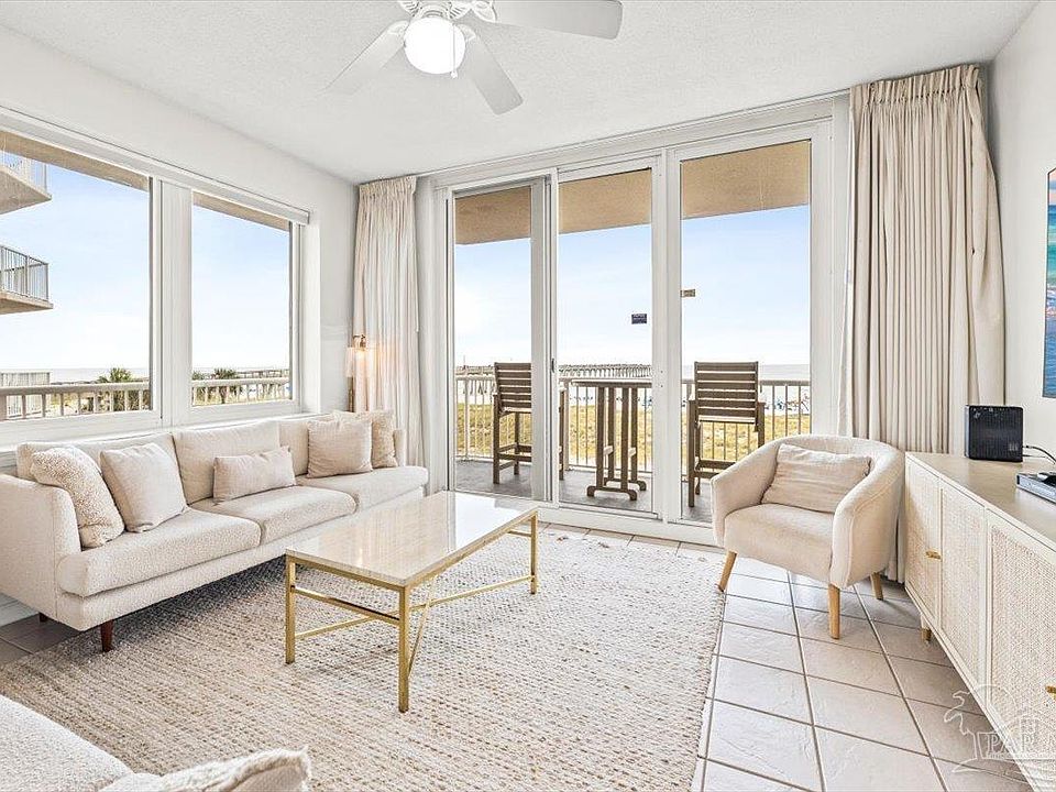 IT’S ALL ABOUT THE UNOBSTRUCTED GULF-FRONT BEACH VIEWS! Wake up to the soothing sound of waves, watch dolphins play in the surf, and enjoy breathtaking sunrises over the incredible Gulf of America. Furnished and recently updated East Corner 3-bedroom, 3-bath condo offers panoramic views, abundant natural light, and a true coastal living experience. Step inside to an open-concept layout featuring a spacious living and dining area, and a fully equipped kitchen with solid surface countertops, stainless steel appliances—including a smooth-top double oven range, microwave, and refrigerator. Tiled flooring runs throughout the main living areas, complementing the bright and airy design. The Gulf-front master suite opens directly onto balcony and features a luxurious en-suite bath with double vanity, makeup area, garden tub, and separate shower. All bedrooms are tastefully furnished with coastal-inspired décor, and the unit comfortably sleeps 8 (King in master, Queen in guest room, and two Twins in the third bedroom). The dining area seats 6, with room for 4 more at the breakfast bar. Enjoy sweeping views from the wraparound balcony— of the Gulf Pier and the Santa Rosa Sound—perfectly furnished with high-quality Polywood outdoor furniture. Exceptional opportunity as Vacation Home or Vacation Rental Investment or Primary Residence. Located in the sought-after Summerwind complex, you’ll enjoy 450 feet of pristine beachfront, three Gulf-front pools (one heated in winter), three hot tubs, private beach walkover, fitness center, outdoor grills, and on-site security Whether you're fishing off the longest pier on the Gulf Coast, snorkeling, deep-sea fishing, shell hunting, or simply relaxing with a book by the beach—this is the lifestyle you’ve been dreaming of. Navarre Beach is only four miles long and one of only ten beaches in the nation protected as a National Seashore. It's definitely "Florida's Best Kept Secret and Most Relaxing Place" conveniently located between Destin