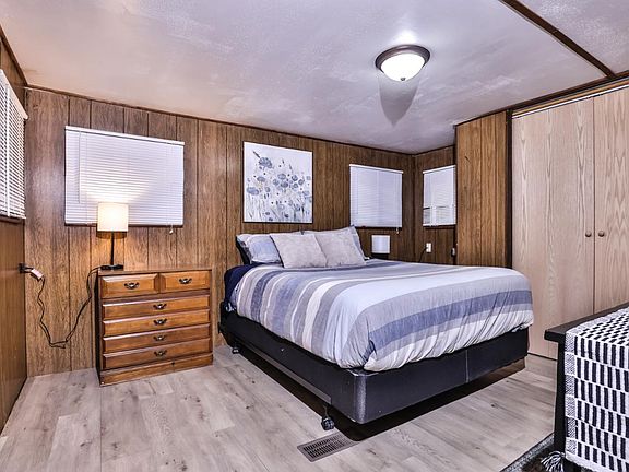 Looking for a nice affordable home? This open concept, two bedroom home with a nice view of Patricia Lake is the answer! Surrounded by beautiful pine trees, this setting is quiet and comfortable. You'll love the lakeview as you sit on your deck! There is a community fire pit and dock already here for you! The park is in a private setting but only 2 miles from town.Stove, refridgerator,Microwave,washer and dryer all included. All furnishings negotiable. Forced air heating with central air! Also included is a 10x12 storage shed along with storage under the deck.You can enjoy the Northwoods without the worry of snow plowing, and garbage pick-up is all included in the monthly lot rent of $490.00. Also has good rental history. Currently rented through december. Great investment property. No real estate included in transaction.