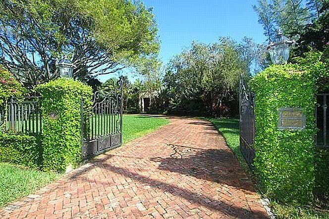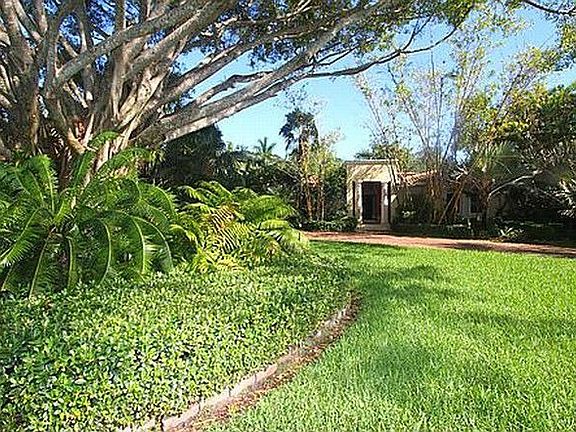 Gracefully set back behind iron gates, spectacular foliated acre, generously sized rooms, esp. the separate family rm, private Master Suite & modern kitchen w/6-burner gas range & butler pantry. 2 dining rooms, formal & informal, wine cellar, living rm w/vaulted ceilings, covered patio areas w/built-in bar-b-q & sparkling oversized pool, this home is geared for Florida entertaining. An exercise rm (could be 6th bedrm), spacious laundry room, garage w/tiled floor & enclosed storage cabinets, & 3 zones A/C.