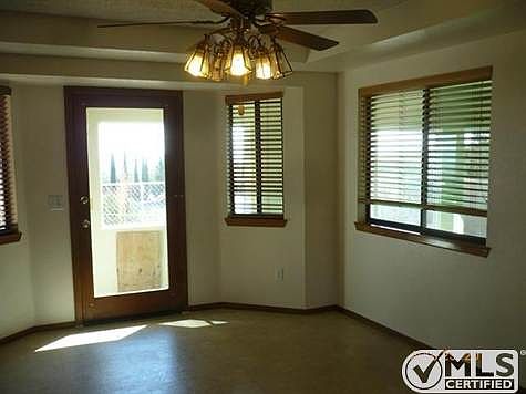 Beautiful Fannie Mae property in Pinon Hills. Home interior freshly painted and re-carpeted. Separate formal living room with wood stove, large dining area, plus breakfast bar. Kitchen offers loads of cabinets and workspace. Family room is ready for additional wood stove. Inside laundry/mud room off garage. Spacious bedrooms, master has on-suite bath and access to rear patio. Enclosed patio leads to rear yard. Exterior amenities include a view deck, separate 2 car detached garage/tack area (with upstairs storage), plus a huge RV garage and a great valley view from the rear. Great riding areas for your horses. Rural setting, yet convenient to shopping, services and Highway 138. Brokered And Advertised By: Keller Williams Realty VVMC Listing Agent: Sue Dearing