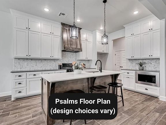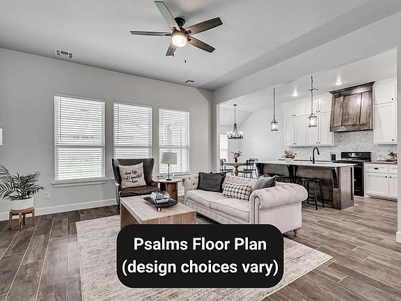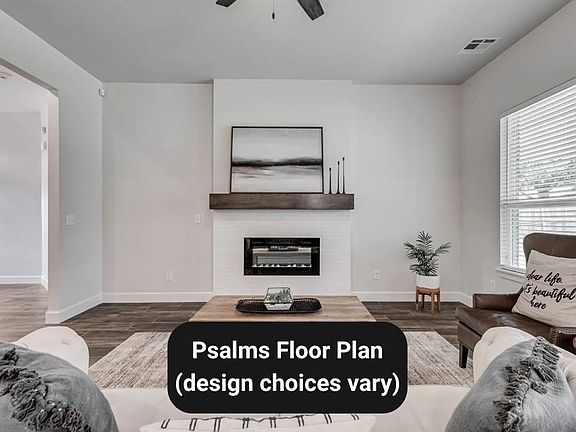 The Psalms offers a thoughtful layout with both functionality and style. This 4-bedroom, 2.5-bath home includes a versatile study that can serve as a fourth bedroom. A spacious open-concept living, kitchen, and dining area flows seamlessly to the covered patio, perfect for entertaining or relaxing outdoors. The kitchen features a large island, walk-in pantry, and direct access to a mudroom with powder bath. The private master suite includes a luxurious bath with dual vanities, a walk-in shower, soaking tub, and an oversized walk-in closet with direct access to the utility room for added convenience. Three additional bedrooms share a full bath on the opposite side of the home, ensuring privacy and space for the whole family. A three-car garage completes this smart, stylish design. Schedule your private tour today!