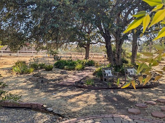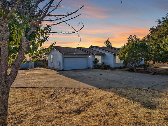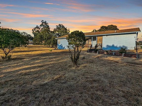 Welcome to this charming 2-bedroom, 2-bath home nestled on a usable 1.18-acre, corner lot. Mature Oaks provide ample shade, creating a serene outdoor space. Oversized concrete driveway w/room for a Boat/RV + all the toys! Multiple outbuildings provide extra storage options. Relax & entertain on the covered concrete back patio. Property allows for livestock and is partially fenced with a curb appealing vinyl fence. Interior features beautiful wood doors & trim throughout. Kitchen offers an abundance of cabinetry, built-in desk space, stainless steel appliances, including a refrigerator. Most furnishings and personal decor are included in the sale with an acceptable offer. The primary bedroom, featuring a spacious closet with a shelving unit, & mirrored sliding doors. An extra area within the bedroom can be used as an office or a sitting area, with direct access to back patio. Primary bathroom offers a large tiled walk-in shower, a separate jetted tub & vanity. Located near Lake Hogan, La Contenta Golf Course & the Calaveras River, making it perfect for outdoor enthusiasts. Whether you enjoy boating, golfing, or simply taking in the natural beauty of the area, this location offers something for everyone. Embrace the Foothills Lifestyle in Rancho Calaveras and Love where you Live!