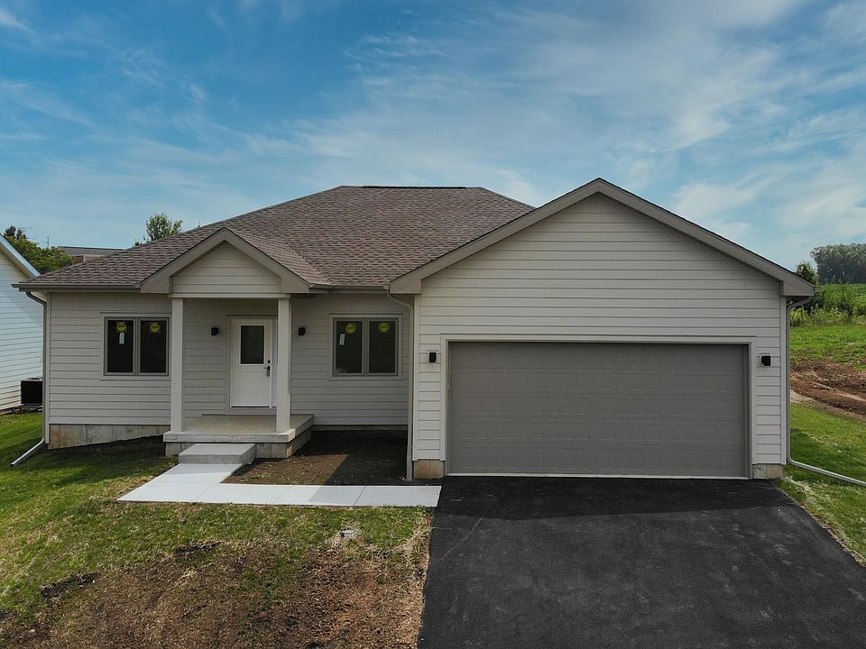 Brand New Construction COMPLETED and move-in ready! Welcome to this beautifully crafted ranch-style home by Mecca Builders, offering exceptional design and modern finishes throughout. Located in a prime area, this home is sure to impress from the moment you arrive. Enjoy excellent curb appeal with LP Smartside siding on the front of the home, a 25-year shingle roof, buried front downspouts, and a sleek partial glass front door with a sidelight. Inside, the home features stylish LVP flooring in the main living areas, plush carpeting in the bedrooms, Craftsman-style trim, tasteful light fixtures, and Moen plumbing fixtures throughout. The open-concept layout centers around a stunning kitchen with quartz countertops, GE appliances, and a large peninsula with seating. A nearby pantry provides additional storage. The adjacent dining space offers flexibility for traditional or alternative use. The laundry and mudroom, conveniently located off the kitchen, includes a utility sink, coat closet, and access to both the basement and attached garage. The basement landing features drywall and a carpeted staircase, offering a polished transition to the lower level. The living room features vaulted ceilings, abundant natural light, and an 8-foot sliding glass door leading to a spacious 12x16 deck with a railing. The private primary suite includes a walk-in closet and an elegant en-suite bath with a double vanity with a quartz top, LVP flooring, and a beautifully tiled shower with a glass door. Two additional bedrooms and a full bathroom are located on the opposite side of the home for added privacy. The full basement is ready for future finishing, already equipped with an egress window, a rough-in for a bathroom, power vent water heater, and 200 AMP electrical. Enjoy the already seeded yard. This home qualifies for the Rockford New Construction Property Tax Rebate Program, where eligible homeowners may receive three years of property tax refunds, potentially saving thousands! Conveniently located near I-90, Javon Bea Hospital, the upcoming Hard Rock Hotel & Casino, shopping, and more. Some photos are virtually staged.