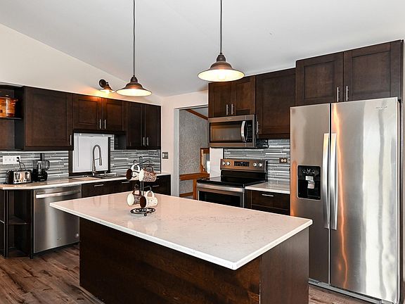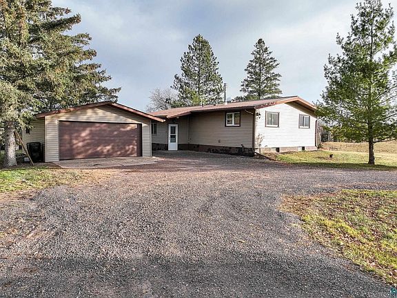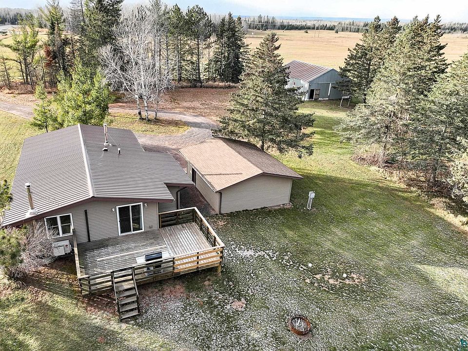 Call this property home with over 18.39 acres with Wagner Creek meandering through the edge of the property! Two car garage, plus a 32x40 pole building with water and electric. This one level living home is conveniently located just 6 miles from Hwy 53 and an easy commute to Superior. Open layout kitchen, dining and living room nicely updated with sliding patio doors to a large deck. Perfect for summer day grilling. Three bedrooms on the main level freshly painted plus a rec room and den/office downstairs with new carpeting a wood burning fireplace and 3/4 bath w/jacuzzi tub. Views of rolling hills across the street and a nice level field on the property have attracted as many as 21 deer to watch for great country living. Previous owners had a nice little hobby farm.