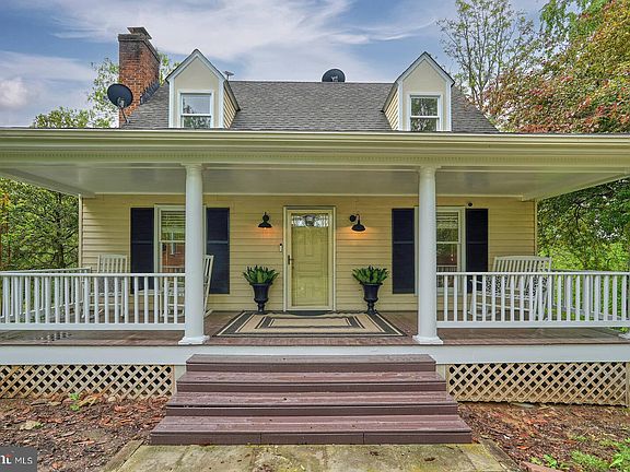 Updated but classic 3-level 3-bedroom Cape Cod in idyllic setting on a three-quarter acre lot! Freshly painted interior. Main level features living room, dining room, breathtaking kitchen, a main level bedroom and powder room. Inviting kitchen is gorgeous, with newer appliances, quartz countertops, copper sink Wolf range and spacious cabinets! Upper level has primary bedroom with walk-in closet, second bedroom, and full bath. Lower level has massive recreation room and two laundry/storage/exercise/workbench areas. Front porch with Trex decking runs the width of the house. Two-level deck in back leads to backyard swimming pool, a personal oasis! Relax in horse country with rural rolling fields, views of the stream, and the soulful horn (usually twice/day) from nearby train tracks. Upgrades include 55-gallon HWH (2021), Charter ProH20 water softener system (2021), HVAC (2024), attic fan (2024), kitchen countertops and copper sink (2024), gutter system with guards (2024), and pool motor (2025). Homeowners have found century-old relics near the old train stop at the bottom of the hill - it's a great place to explore! Lovely personal retreat.