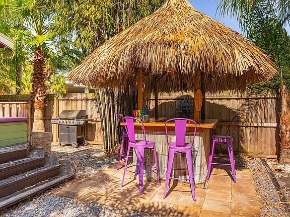 Large sun deck, tiki bar, gas grill, and fun outdoor living space