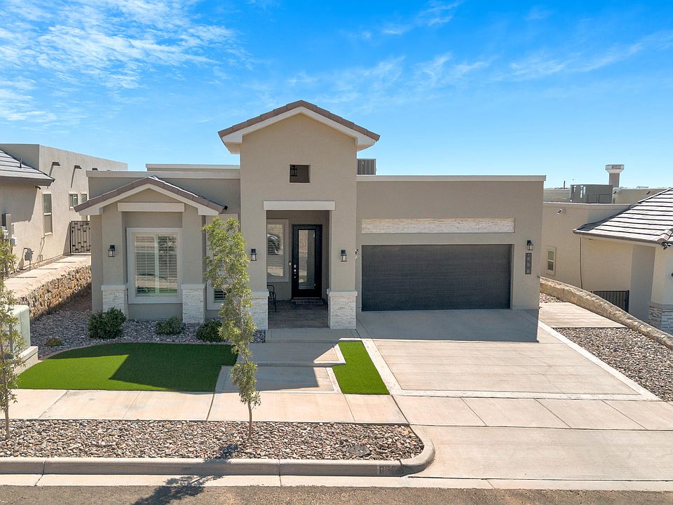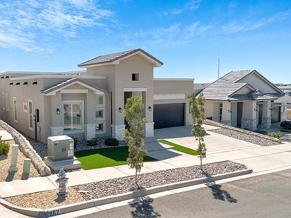This impeccable Diamond Homes resale shines brighter than the rest. Nestled in Hillside Park at Mission Ridge, this single-story 3-bed, 2.5-bath home blends crafted detail with everyday ease: a welcoming foyer, 8-ft doors, crown molding, wood-paneled entry ceiling, decorative mirrors, recessed lighting, and shutters on most windows. The chef's kitchen centers the plan with a massive 46-sq-ft quartz island, stainless appliances (refrigerator included), a large pantry, and open flow to the living room with a cozy fireplace. A dedicated mudroom off the garage keeps daily life organized. The private owner's suite elevates downtime with a large resort-style bath—double vanities, oversized shower, and spa finishes. Thoughtful upgrades include a tankless water heater and pre-wired speakers. Outside, the backyard is fully finished with a pergola and privacy fence, and there are no neighbors in front or behind—perfect for gatherings or quiet evenings. No HOA, just polished, move-in-ready living in a coveted location.