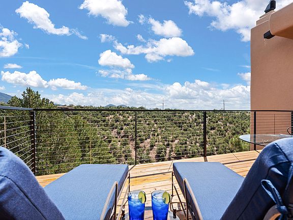 Welcome to your private Santa Fe sunset retreat! Just minutes from the historic Santa Fe Plaza, this luxurious 3-bedroom, 4-bathroom two story home offers unmatched panoramic views of the city skyline and the majestic, awe-inspiring Sangre de Cristo mountains. Take in the beauty of every sunrise and sunset; each room in this spacious 3,100 sq. ft. home promises breathtaking views, unmatched relaxation, and a warm, peaceful atmosphere that defines the essence of Santa Fe living.