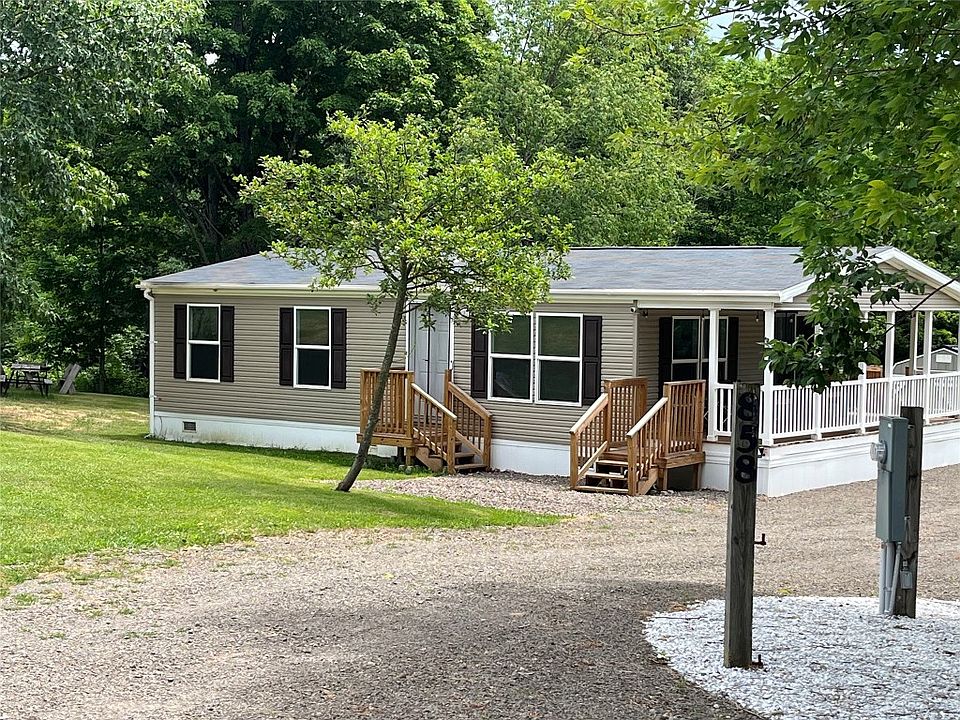 Like new 2019 Clayton Doublewide home situated on 6.43 acres on a dead-end road. This home comes with many extras. 3 bedrooms 2 full bathrooms, recessed lighting, built in entertainment center, master bedroom with a walk-in closet and full bathroom. Sliding glass doors to your covered front porch. Step out the back door to your grill area and brand new 16 x 16 screened in deck. Outside you have a landscaped yard, woods for trail riding or hunting. There are 2 sheds - a 12x20 and 12x24 both with electric. The back of this property connects to Pine Hill State Forest with a 1000 plus acres of State Land for Hunting and Hiking. Country living with all the amenities. Minutes to town and Interstate 88. This home is in move in condition. Bring your things and start enjoying your own little slice of the country!