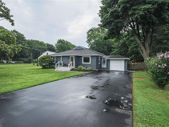 This one is a show stopper! Completely renovated Ranch style home with open concept living. This well maintained property features extensive updates including a newly renovated kitchen with granite countertops, dovetailed cabinetry, stainless steel appliances, and breakfast bar that overlooks the great room. New vinyl siding (2014), addition (2014), architectural roof (2014), new double wide driveway (2016), rear patio (2015), 1" foam insulation under siding (2016), Furnace (2012), AC (2012), Hot water tank (2013), new vinyl windows (some in 06, the rest in 2013), Brazilian Cherry floors and original hardwoods throughout (no carpeting), heated floor in the spacious mudroom, 1st floor laundry in the new owners bedroom/en-suite bath and walk in closet, glass block basement windows, finished basement (2020), basement workshop, tons of dry storage, fenced in yard. Close to expressway exits an easy commute into the city! Average RG&E $160/month.