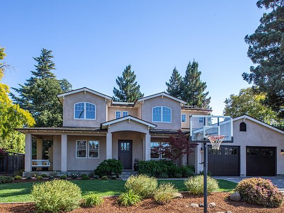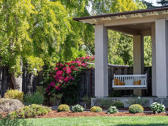 Elevated from the road on a quiet cul-de-sac street is this enchanting Tuscan style home. 9 years young, this home offers all the charm and conveniences you can dream of. A spacious covered front porch and formal entry welcomes you to this custom built, open-concept home. Gorgeous hardwood floors, beautiful arched entryways with 10 foot ceilings and crown molding, plus multiple skylights, grace this bright home w/warmth. Spacious bedrooms including a downstairs en-suite guest bedroom, kitchen w/granite island, prep sink, separate SubZero refrigerator and freezer, generous laundry/mud room and endless storage for added convenience. Elegant kitchen/family room opens to a tree-lined yard with two covered patios and planter beds. Includes, SunPower Solar Panels, owned, two EV charging stations, and extensive storage in finished garage. Just minutes from Los Altos Golf and Country Club, Loyola Corners, and excellent Los Altos Schools make this an ideal place to call home!
