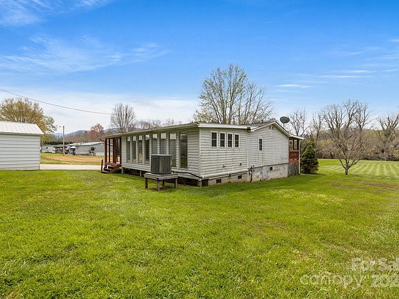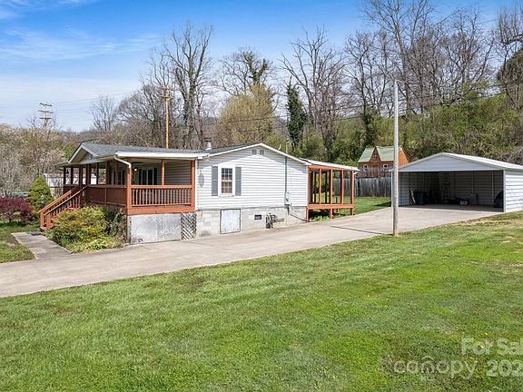 Facing the Pigeon River in the Clyde area, this is one you'll surely want to see! A 2 bedroom/2 full bath manufactured home with site built addition (large bonus or could be used as a 3rd bedroom) and large front yard. The bonus room has LOTS of windows for plenty of natural light. A full length covered front porch leads in to the living area with Pergo type wood flooring, gas fireplace, & vaulted ceilings. Has some built-in features and a walk-in closet. Split bedroom floorplan with kitchen and laundry centrally positioned. The back of the house as a nice covered porch and entryway into the large bonus room. There is a concrete driveway with very spacious carport. You can take a full virtual tour here: https://my.matterport.com/show/?m=pPzS1NfX6Nh&brand=0&mls=1& and make sure to see the property video here: https://listings.wncrealestatephotography.com/videos/018ecd59-4c52-7160-a1fb-b7c685225175 - See Attached "Important Info/Disclosures". Property does not have river access.