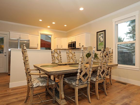 This charming, move-in ready home is bursting with character! Interior and exterior paint colors gives it a delightful mid-century modern vibe. The recent remodel includes a stylish kitchen with updated cabinets, granite countertops, a chic tile backsplash, and stainless steel appliances. Enjoy the comfort of newer LVP flooring and cozy carpet throughout, plus upgraded fixtures. The functional floorplan features an office area and convenient laundry closet. Outside, you'll find a awesome covered front deck and cute back patio, as well as a handy storage shed. With great curb appeal, this home is truly turnkey and ready to impress. Assigned off-street parking space. A must-see!
