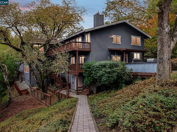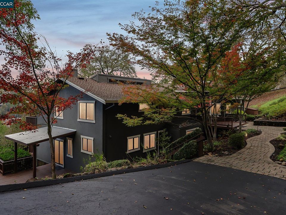 Gorgeous hillside home with flexible floorplan for the whole family! Enjoy sweeping views of downtown Lafayette and the surrounding hills from this private, beautifully appointed home. The flexible layout connects the living, dining, and kitchen areas, creating an easy flow for both entertaining and everyday living. The kitchen offers premium appliances, custom cabinetry, and a casual breakfast bar. The main level features a serene primary suite, an office, three additional bedrooms, and two-and-a-half baths. Downstairs includes a spacious fifth bedroom, full bath, laundry room, and a large bonus room with separate exterior access—ideal for guests, an au pair, or a home office. Two driveways and an oversized three-car garage offer abundant parking. Set on two acres dotted with heritage oaks, the outdoor spaces shine with a generous patio, firepit, and outdoor kitchen. Perfect for quiet evenings or lively gatherings under the stars. All just minutes from BART, Hwy 24, Lafayette Reservoir, downtown shopping and dining, and top-rated Lafayette/Acalanes schools. You will not find anything like this very special home, visit today!