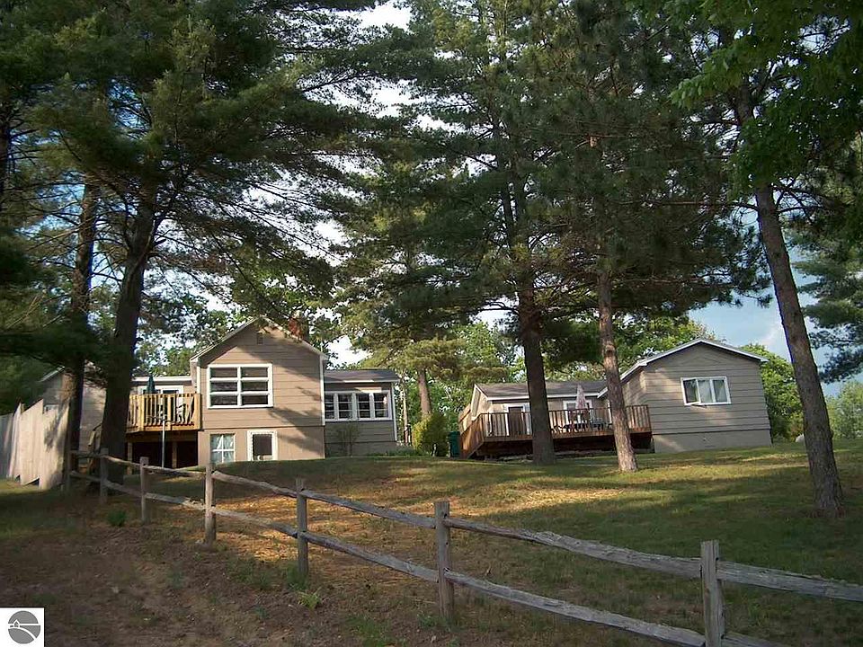 GET-A-WAY ON RENNIE LAKE just minutes from Traverse City. Two waterfront cottages for the price of one. Stay in one and rent the other one out or use for your friends and family. Main home is 2-3 bedrooms with a walkout lower level, fireplace, hardwood floors, enclosed sunroom and attached deck The smaller cottage is one bedroom with a large deck facing the lake. Nice lake side deck overlooking the sandy beach frontage. Rennie Lake is a 250 plus acre lake great for swimming, boating and fishing. Watersports, biking and hiking are available close by. This is a wonderful opportunity to own your own slice of northern Michigan waterfront living.
