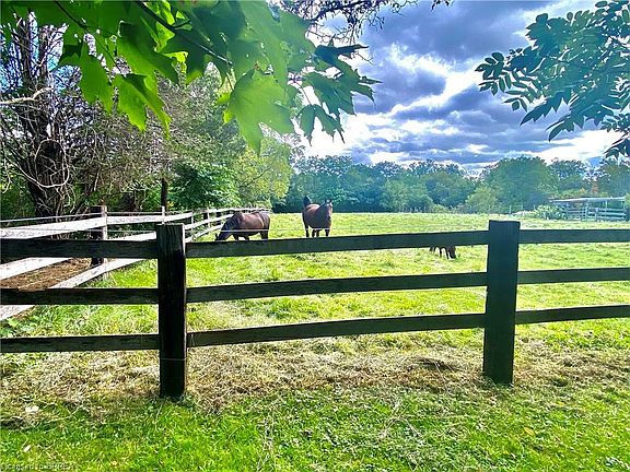 This perfect hobby farm has the 5 acres required to keep livestock . Pride of ownership here. Barn, lovely home and terrific workshop. Fenced paddocks, beautiful meadow with walk down trail. This home is located 3 min from the beautiful, friendly, quaint, lakeside town of Port Dover. Same owners since 1982 and they have maintained and upgraded this home beautifully.Known as Sea Horse Valley this farm is the total package! 2008 Built 28 x 40' steel clad insulated two storey workshop with Radiant in floor heating, 220 volt wire, hot and cold water. upper office 21' x 13' heated and cooled. Addition houses tractor. Board and Batton 5 stall horse barn with tack room, hay storage, water. Perfect sized stalls and easy maintenance,storage for 300 bales of hay. 12' x 216' leanto for implement storage. Three pastures with electric sensor and riding paddock. Walk down the trail to the beautiful meadow! 1.5 Storey House has newer hardboard siding, windows done in 2000. natural gas heating and central air. Beautiful bright foyer leads you into the open concept family room with gas fireplace, look through to well appointed kitchen, with centre island . Four piece bath. Big sunroom, dining area, living room and bedroom complete this level. All hardwood floors, cherry trims. Rustic decor with booksheves, brick walls and pine. Upper area offers a loft style, primary bedroom, with double closets and lots of natural light. Full utility basement. The lot is private and serene with lots of mature trees and perennial gardens. Circular driveway allows horse trailer or RV access. Side addition to barn for storage. Small storage shed. Lots of birds and wildlife. Beautiful armor stone patio/deck with arbour above and twinkle lights. Sit and watch your horses graze, while enjoying the many species of songbirds at the feeders. Country lifestyle close to town for shopping, schools, many restaurants and the famous Arbour Hotdogs! 10 min to Fletchers World. 25 min to Ancaster Fairgrounds