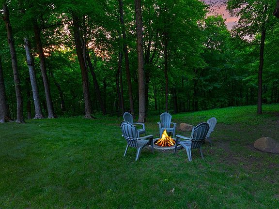 Welcome to your dream, tranquil retreat—where privacy, peace, and luxury meet. Nestled on 2.79 serene, wooded acres, this stunning custom-built masterpiece offers 4,178 square feet of beautifully designed living space that makes you feel like you're deep in the woods, yet you're just minutes from everyday conveniences. This home is rich with high-end comfort, smart design, and nestled in the heart of nature. Surrounded by mature trees and lush landscaping, this home delivers unmatched tranquility and panoramic views from nearly every room. Step inside to find high-end finishes throughout, including acacia hardwood floors, custom millwork, vaulted ceilings, spacious bedrooms, granite countertops, and Restoration Hardware vanities. The main level features a bright and open layout with tons of natural light pouring in, a gorgeous gourmet open kitchen with stainless steel appliances, an office, laundry, and three spacious bedrooms including a vast primary suite with private bathroom oozing with luxury —all conveniently on one level. The walkout lower level is an entertainer’s dream: a huge family room with kitchenette/wet bar, a theater room with a big screen, a sauna, an exercise room, and a flexible bonus space ideal for an additional office, playroom, or workout area. This level also includes another bedroom and a ¾ bath—perfect for your guests. Enjoy your morning coffee on your outdoor deck space or in the thoughtfully crafted 3-season porch, constructed with reclaimed wood and puncture-proof super screen. The solid 2" cedar deck is just as impressive and built to last. Outside, you'll find LP Smart Siding on all sides and a heated, oversized 3-car garage with the framing to add a 4th door—plenty of space for all your toys and tools. A private trail winds through your nearly 3-acre backyard, giving you your very own nature escape. This exceptional property offers the ultimate in privacy and tranquility, creating a peaceful haven away from the hustle and bustle. This is more than just a home—it's your own private sanctuary.
