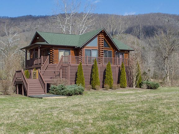 Full-time, river-front vacation! ! A fishing enthusiast's dream - right on the New River. All the comfort & beauty of a mountain lodge without the sign-in desk! Gorgeous log home looks out on the New River from its private settlement away from all the noise. Enjoy the spectacular view any time of year through the soaring windows in the living room, or on the covered deck in the warmer months. Newer stainless steel appliances in the eat-in kitchen. Dining area drinks in the morning light. Private access to the deck from the master bedroom. Plenty of stylish fixtures accentuate the warmth of the wood throughout. Call for a showing today!