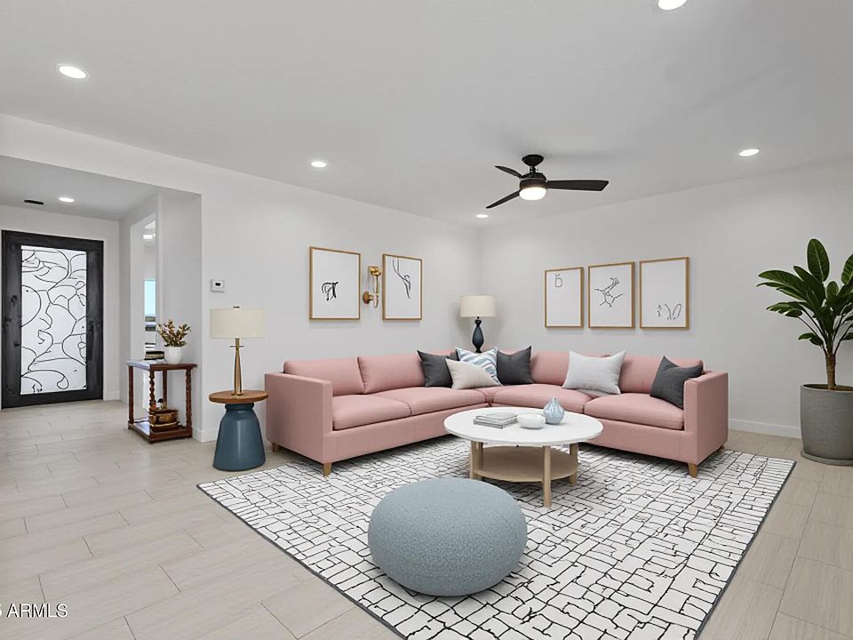 2025 custom-built single-level home offers the perfect blend of style, function, and affordability. Featuring 3 bedrooms and 2 bathrooms, this split floor plan is designed with 9' ceilings, Quartz countertops, soft-close cabinetry, a spa-inspired primary ensuite, and recessed lighting throughout. The jaw-dropping iron entry door sets the tone, creating a stunning first impression.