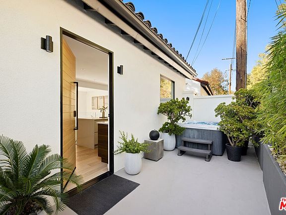 Welcome to this beautifully renovated Hollywood Hills West refuge positioned on a non-through street with sweeping views of the canyon, trees, and hills. Enter through a secured gate to the home's private front patio, the perfect place to enjoy a morning beverage, relax in the hot tub, barbecue, or converse with guests. Inside, discover a fully updated kitchen with custom cabinetry, top-of-the-line appliances, and center waterfall island. Wood floors flow into the living room, complete with large panes of sliding glass that open to the main-level balcony and its spectacular vistas. Nearby, the dining room also promises serene views through a large picture window. On the lower level, the owner's wing includes a makeup nook, sitting area, and direct access to an expansive viewing deck with numerous sitting and lounging areas. The spa-inspired bath features a floating dual-sink vanity, soaking tub, large picture window, and oversized rainwater shower. Custom built-ins in the walk-in closet maximize use of space. Other bedrooms are spacious, including a large additional room that is perfect as a third bedroom or can even be used as an office, gym, yoga studio, media room, writer's haven, and more. Outside, a nature pathway leads to the terraced gardens below, ideal for peaceful meditation and thoughtful solitude. For added convenience, there is a massive amount of storage space in both the attic and basement, with each measuring roughly 900 square feet in size! Enjoy this central location tucked away from the city yet just moments to Laurel Canyon's cult favorite Pace restaurant, Sunset Boulevard, the Westside, Mulholland Drive, and the Valley. Top-rated Wonderland Avenue Elementary School and Mulholland Tennis Club are also close by.