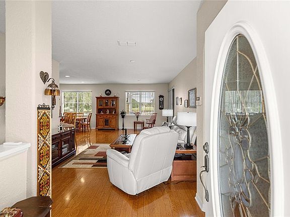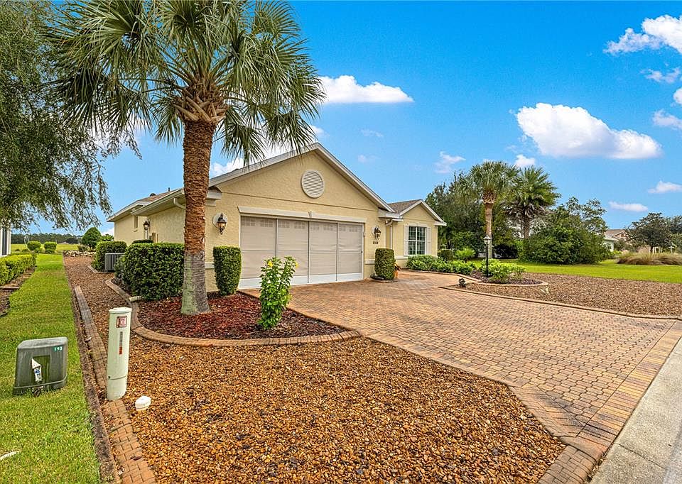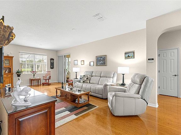 This oversized Ayreshire is located in the much sought-after 55+ community of Candler Hills in On Top of the World. It's situated on one of the very prettiest lots in Candler East on The Preserve with hard-scapes and an impressive rock wall in the rear of the home. Pull up to the paver drive and notice how much space between the homes! Once inside some of the features you will notice are: Hard wood flooring at the entrance, living room, dining room and nook. Tile flooring in kitchen, baths, Florida room and birdcage. Beautiful granite counters with wood cabinets in the kitchen and plenty of them, every chef's dream. Pretty backsplash. New lighting over the bar area. Newer stainless steel appliances including a gas range. Inside laundry with washer and dryer included. Enclosed 3 season Florida Room. HUGE birdcage on the back with wonderful, private views. Bedrooms with laminate flooring. Large primary bedroom. Primary bath with a double sink vanity and updated walk-in tile enclosed shower with a bench. There are two guest rooms perfect for family and friends. Guest bath has a tub/shower combo. The garage features an epoxy floor, helping keep it clean. Gas furnace and hot water heater. CDD PAID! Roof and A/C 2024. This home is truly move in ready! Call for your appointment to view today!