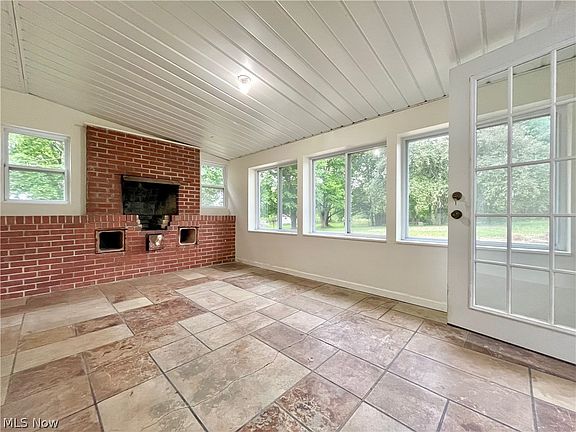 greeted by a spacious living room, complete with a cozy fireplace. This home features a delightful sunroom, offering panoramic views of