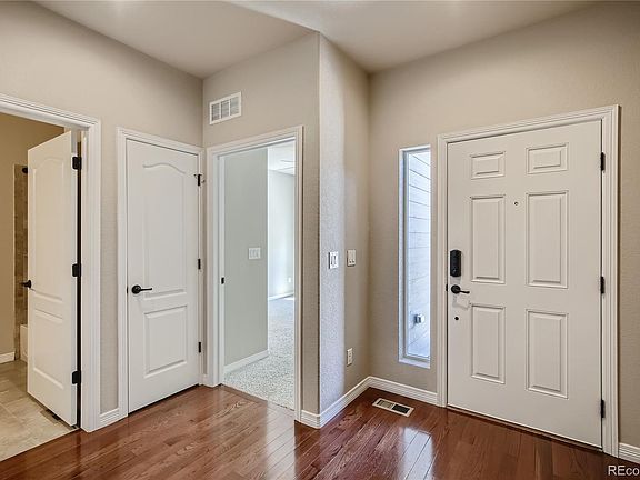 This 2-Bed, 2-Bath home with a flex space is waiting for you! Upon entering this light-filled home, you’ll notice the gleaming hardwood floors and see the secondary bedroom and a full bathroom. The flex space can be used as a private office if you work from home, a formal dining room or a TV/reading room. The spacious Great Room is perfect for entertaining and enables you to prepare food while visiting with your guests. The kitchen has 42" high cabinets, granite countertops, stainless steel appliances, double wall ovens, a gas cooktop, an island and convenient pull-outs cabinets. The gas fireplace provides a cozy spot for drinking hot chocolate on a snowy Colorado evening. The Primary Bedroom features a spacious ensuite with a walk-in shower, double sinks and 2 walk-in closets. Enjoy your morning coffee or tea on the covered back patio. Store your golf cart or extra toys in the oversized garage. The full, unfinished basement is ready for your finishing touches and has egress windows if you want to add a bedroom. THE SOLAR PANELS WERE PURCHASED AND WILL BE PAID OFF BY SELLER AT CLOSING. All appliances remain. You’ll love the active adult lifestyle of resort-like Heritage Todd Creek with all of the activities and amenities including the 18-hole, 700-acres Arthur Hills championship golf course, pickleball and tennis courts, bike maintenance area, business center, fitness center, indoor and outdoor swimming pools, hot tub, library and recreation rooms. Enjoy fitness classes, water aerobics or games with friends. Relax and enjoy breakfast, lunch or dinner in the restaurant located in the 33,000 sq. ft. resort-style clubhouse. Enjoy the resort lifestyle without leaving home; there’s always something to do at Heritage Todd Creek! Close to highways, dining, shopping, and entertainment with an easy commute to DIA, downtown Denver, Golden, Boulder and beyond. WELCOME HOME!