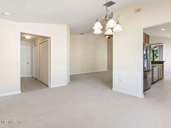 Move-in ready and designed for easy living, it delivers a maintenance-light, socially rich lifestyle in one of Jacksonville's premier active-adult enclaves. This end-unit carriage home offers lake views from the front and serene preserve views from the screened lanai. Inside, the home features fresh interior paint, brand-new neutral carpet, and a fully renovated master bath with new tile, glass enclosure, faucets, and lighting. The kitchen shines with new stainless-steel LG appliances. Additional upgrades include new ceiling lights and fans throughout the home and lanai, a new water heater, and a well-maintained HVAC (2019). This immaculate home in the vibrant, gated 55+ Sweetwater Del Webb community offers resort-style living at its finest. Enjoy the 22,000 sq ft Summerland Hall clubhouse with an indoor lap pool and spa, outdoor zero-entry pool, bocce, movement studio, game rooms, social clubs, tennis and pickleball, plus miles of nature trails.