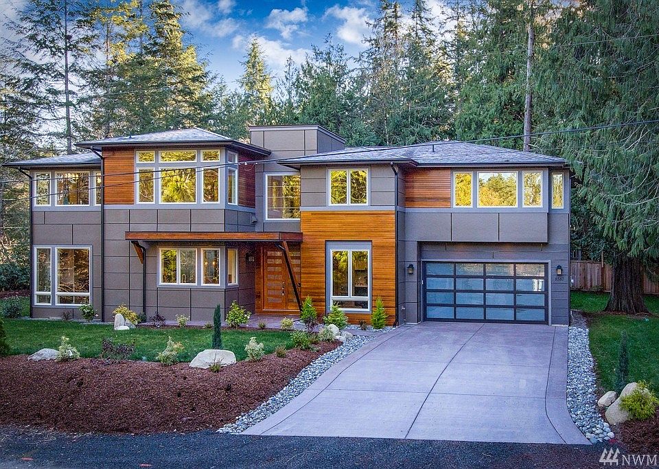 Northwest Living new Contemporary style custom build home. Vaulted celling entry, outstanding custom build kitchen & Kitchen Aid appliances, bright open Living room with modern gas fireplace, specious Dining, very nice covered outdoor living area & fireplace to enjoy weather. Oversized Mater bedroom enters amazing bright bathroom & heated floor & huge w/in closed. Nicely designed bathrooms, big Media room & speakers and pre wired m/center. AC/heat pump. Great looking inside & out. Must see.