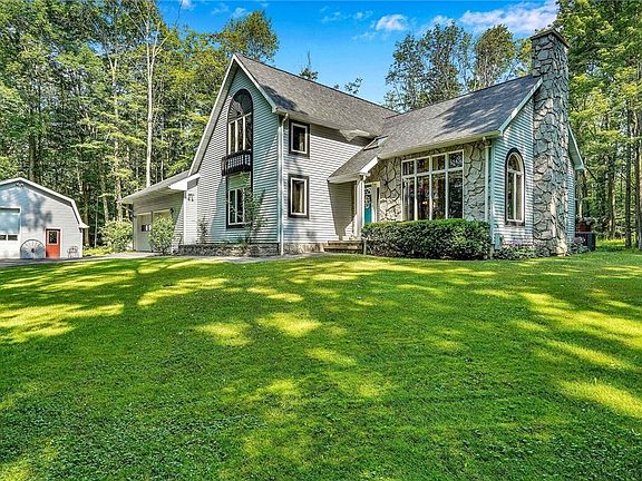 NEW PRICE! THERE'S JUST SOMETHING ELEGANT AND SURREAL ABOUT THIS CUBA, NY, COUNTRY PROPERTY! Maybe it is because the Owners took such great care and it just shines through everywhere! Shines through the glorious huge windows and doorways in just about every room. Cathederal ceilings add the height and a feeling of spaciousness you will like. Remodeling done right, new kitchen with maple custom kitchen cabinetry, tile flooring/beautiful quartz countertops-nicely done! Kitchen/family room combination is the perfect set up! Cozy up this fall in front of not one but two woodburning fireplaces & enjoy the outdoors at the same time through all the glass. Primary first floor bedroom ensuite bath completely remodeled with walk in marble shower/niche/floors/glass door, blue cabinetry. Simply stunning! Second full bath updated nicely as well! 2nd floor bedrooms has bright, private bath. Laundry is conveniently located on the first floor. Deep 2 car garage w/ storage, completely dry full basement, utilized well! 24 x 32 barn is a BONUS for everthing else. and that surrounds the property is special- trails, open field for your garden, periennial flowers and raspberry bushes galore!